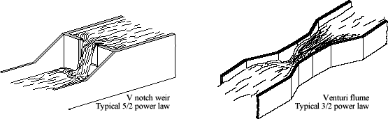 The popular V-notch weir (512) and Venturi flume (3/2) flow